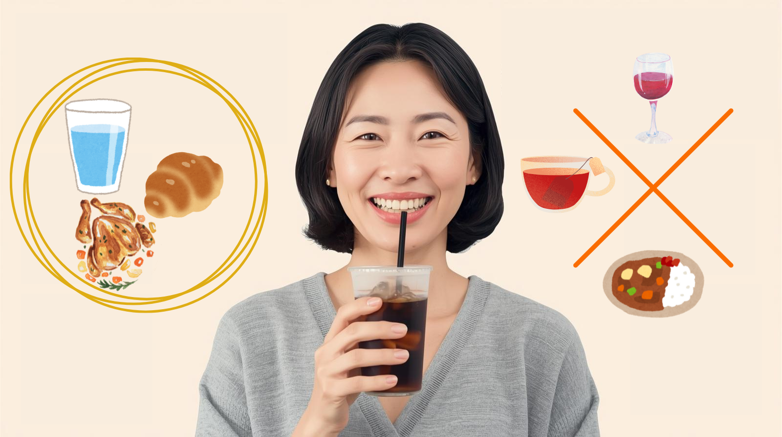 ホワイトニング直後は、特に色の濃いものや酸性の強いものは着色や刺激のリスクが高まります。